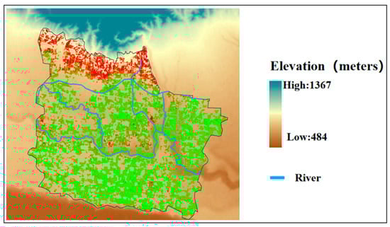 Elevation and river distribution map of the study area.
