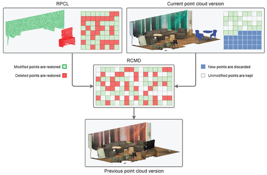 An RCMD file stores references to points that are stored in an RPCL file and in the current point cloud version file. A rollback operation reads the data from the RCMD and takes the referenced points from the RPCL and the current version file to generate the previous version of the point cloud.