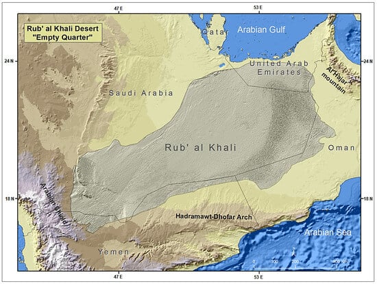 - The Saudi Geological Survey. Rub’ al Khali-Great Sand Sea; Saudi Geological Survey: Juddah, Saudi Arabia, 2011.