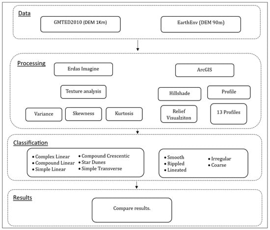 - Blumberg, D.G. Analysis of large aeolian (wind-blown) bedforms using the Shuttle Radar Topography Mission (SRTM) digital elevation data. Remote Sens. Environ. 2006, 100, 179–189. [Google Scholar] [CrossRef]