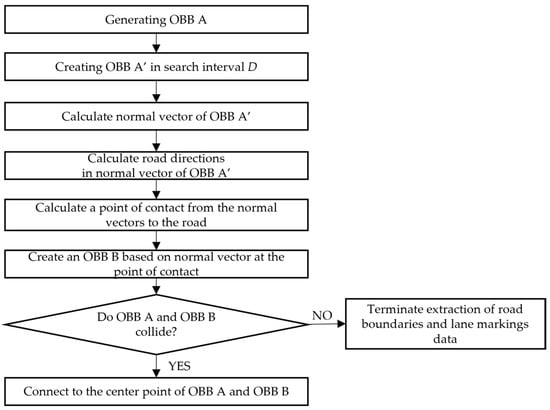 The procedure of the OBB collision-detection algorithm to extract road boundaries and linear road markings.