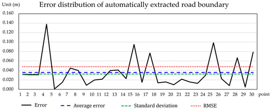 Figure 28 shows the distribution of the error values of the automatically extracted road boundary data for every 30 points.