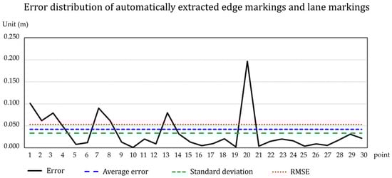 Similarly, Figure 30 shows the distribution of the error values of the automatically extracted linear road marking data for every 30 points.