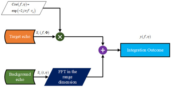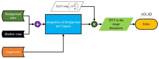 In the end, we will linearly combine the target echo and background echo by employing frequency-domain multiplication to superimpose the linearly chirped signal onto the final raw SAR echo. The resulting signal flow diagram of the raw SAR echo video generation is illustrated in Figure 9.