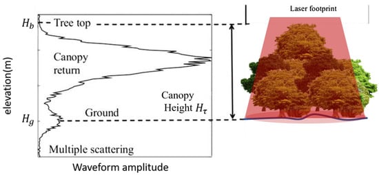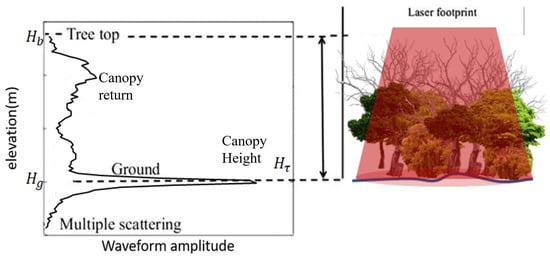 The treetop is the first return represented by Hb, the main ground return is represented by Hg, and Hτ is the tree height during the wet season. During the wet season, more leaves return the energy from the tree top and waveform showing the dominant peak in the main canopy. During the wet season, more leaves return energy from the tree top and waveform, showing a dominant peak in the main canopy.