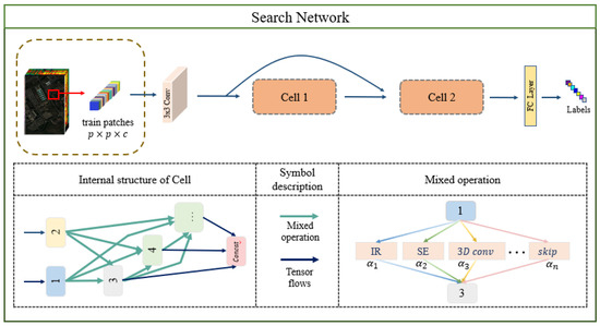In order to realize more efficient and compact search results for hyperspectral image classification task by the NAS method, we propose a modular search space different from DARTS [41]. In the modular search space, modules are regarded as candidate operations rather than simple convolutions, which can exploit the experience of manual architecture design and ensure the stability of search results.