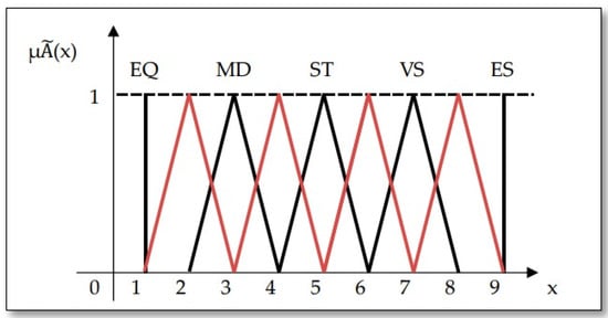 Figure 3 represents the triangular fuzzy number and Figure 4 is a visual illustration of the membership function (MF) utilized in the current paper to interpret the fuzzy linguistic terms, as put forth by [77].