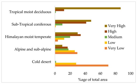 There are five types of forest in the IWH region [62]. These are alpine and subalpine, cold desert, Himalayan moist temperate, subtropical coniferous, and tropical moist deciduous. Diversity in flora leads to variation in the amount of dry or wet fuel available for forest fire. It reflects the five different types of forest with their varying flora species which consequently contribute to forest fires in differing percentages. Sub-tropical coniferous forest is very much prone to forest fire while cold desert, alpine, and subalpine forests are the least prone to it.