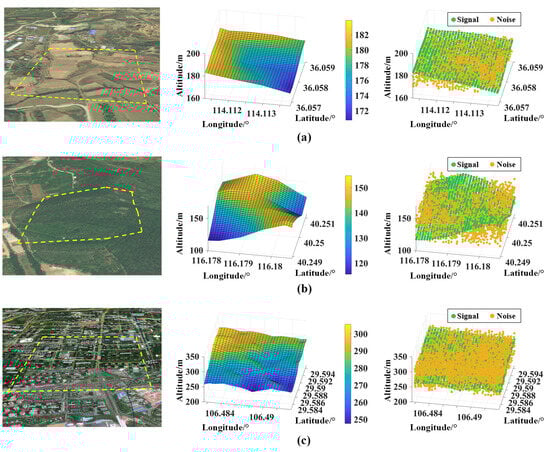 A detection period () can be divided into equal interval time bins (), where the time interval is defined as , that is, the time resolution of the histogram. represents the total number of time bins in a detection period (). After the accumulation of multiple pulse detections, the echo photon counts in each time bin are counted. Signal and noise can be distinguished by analyzing the different probability distribution characteristics of the echo data.