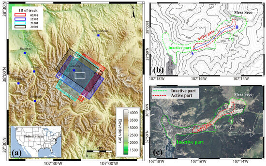 - Milillo, P.; Fielding, E.J.; Shulz, W.H.; Delbridge, B.G.; Burgmann, R. COSMO-SkyMed spotlight interferometry over rural areas: The Slumgullion landslide in Colorado, USA. IEEE J. Sel. Top. Appl. Earth Observ. Remote Sens. 2014, 7, 2919–2926. [Google Scholar] [CrossRef]