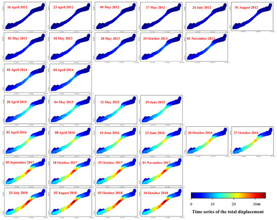 4.1. The Spatial–Temporal Displacement of the Slumgullion Landslide