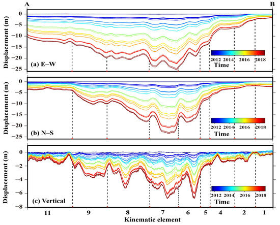- Aryal, A.; Brooks, B.A.; Reid, M.E. Landslide subsurface slip geometry inferred from 3-D surface displacement fields. Geophys. Res. Lett. 2015, 42, 1411–1417. [Google Scholar] [CrossRef]