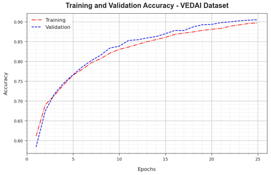 Figure 5 displays the training accuracy and of the IDLVD-UARSI technique on the VEDAI database. The is determined by the evaluation of the IDLVD-UARSI technique on the TR database, whereas the is computed by evaluating the performance on a separate testing database. The results show that and increase with an increase in epochs. Accordingly, the performance of the IDLVD-UARSI technique is improved on the TR and TS databases with the maximum number of epochs.