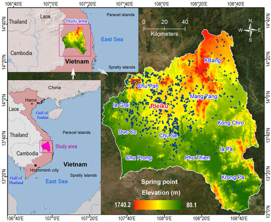 Location of the Gia Lai province and groundwater spring locations.
