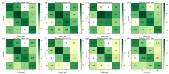 Figure 10h displayed the results of recognition using the AlexNet model. Notably, the most significant recognition error occurred when Category 3 of homesteads was incorrectly identified as Category 2, accounting for 34.9% of the errors. Category 4 was erroneously classified as Category 1 or Category 3, with both errors exceeding 10%. The recognition error rate for the remaining categories was minimal, and Category 2 exhibited superior recognition and classification, with a correct recognition rate of 91.5%.