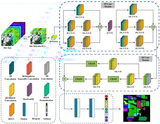 22]. Wang et al. developed a resource-optimized convolutional model, blending rapid 3D-CNN algorithms with depthwise separable convolutions, facilitating spatial–spectral feature extraction without parameter escalation [