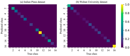 Figure 6 illustrates the confusion matrix, presenting the accuracy measures of the IntegratedCNNs method across both the Indian Pines and Wuhan University datasets. The predicted pixels are predominantly aligned with the corresponding truth classes, with an insignificant number of misclassified pixels observed.