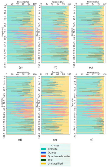 | Class | Quartz | Talc | Aspectral | Chlorite | Quartz–carbonate | Total | R % | P % | F1-s % |