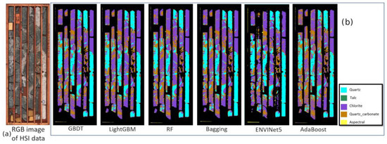 - Acosta, I.C.C.; Khodadadzadeh, M.; Tusa, L.; Ghamisi, P.; Gloaguen, R. A Machine Learning Framework for Drill-Core Mineral Mapping Using Hyperspectral and High-Resolution Mineralogical Data Fusion. IEEE J. Sel. Top. Appl. Earth Obs. Remote Sens. 2019, 12, 4829–4842. [Google Scholar] [CrossRef]