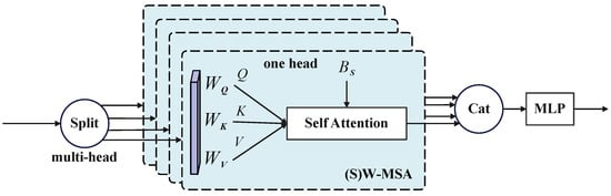 where B is a learnable relative position bias. This process is shown in Figure 4. Following this, this function is repeated h times, and the result after h times is the output of W-MSA. As for the MLPs (multilayer perceptrons), a network with two fully connected layers is contributed. Each fully connected layer will follow a GELU for further feature transformations.