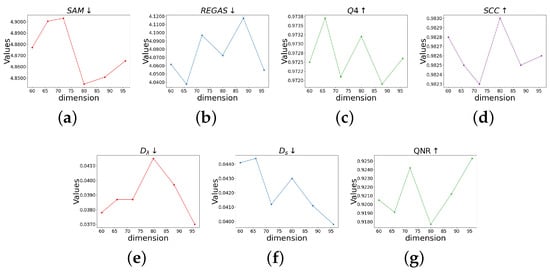 (a–g) show the results of quantitative results with different values of feature dimension.