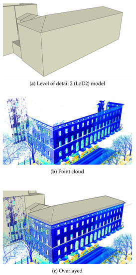 In our study, we carried out manual registration between point clouds and 3D building models. This may seem time- and labor-consuming when compared with automatic registration. But automatic registration can lead to more errors than manual registration. For example, there can be errors in bundle adjustment and also facades may not be properly visible. In contrast, by performing manual registration, we can minimize the errors.