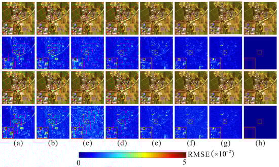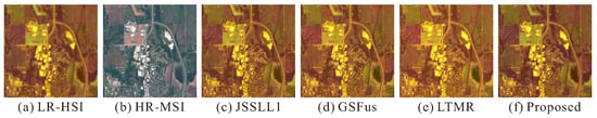 Hyperspectral (HS) imaging is an advanced technology that enables the acquisition of a high-dimensional image dataset encompassing numerous diverse bands. Due to their rich spectral information, HS images (HSIs) have become extensively utilized for numerous earth observation tasks, such as image classification [,], ecosystem monitoring [], and change detection []. Nevertheless, HS imaging sensors struggle to balance their spatial and spectral resolutions due to finite sun irradiation [,,]. As a result, HSIs often prioritize spectral resolution over spatial resolution, restricting their applications in the study of land surface dynamics occurring in small areas [,,]. Fortunately, multispectral (MS) imaging sensors generally outperform HS imaging sensors in terms of spatial resolution. This provides an opportunity to perform HSI super-resolution by integrating complementary information of the high spatial-resolution MS images (HR-MSIs) and the low spatial-resolution HSIs (LR-HSIs) captured from the same scene, resulting in the generation of the desired HR-HSIs. Current HSI super-resolution approaches are primarily categorized into three groups []: deep learning (DL)-based methods [,,], matrix factorization-based methods [,], tensor-based methods [,,].