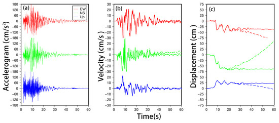 - Wang, R.; Parolai, S.; Ge, M.; Jin, M.; Walter, T.R.; Zschau, J. The 2011 M w 9.0 Tohoku earthquake: Comparison of GPS and strong-motion data. Bull. Seismol. Soc. Am. 2013, 103, 1336–1347. [Google Scholar] [CrossRef]