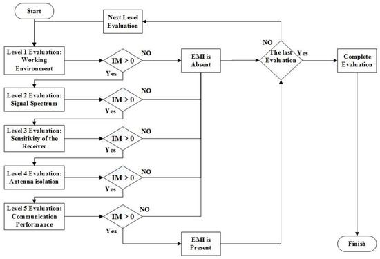 Step 7: When all levels of EMC evaluation have been completed, if the evaluation result of any level is , it can be concluded that EMI is present and there is electromagnetic incompatibility in the vehicular communication system.