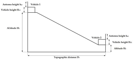 (1) According to the developed digital map, a terrain profile and a contour map are obtained. The vehicle communication system propagation model is established based on the actual terrain. Through the above propagation model, the power received by the receiver and the reduction in the receiver’s sensitivity are calculated. The correctness of the evaluated model is verified in comparison with the free-space propagation model and the measured data.