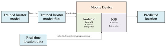 When the DVAE-CNN network learns the available feature and position mapping relationship from a large amount of data, it will be packaged into a mobile executable file, which is usually used for real-time positioning applications and fusion with other sensory information. The model needs the mobile application flow chart of the model in the training phase as shown in Figure 10.