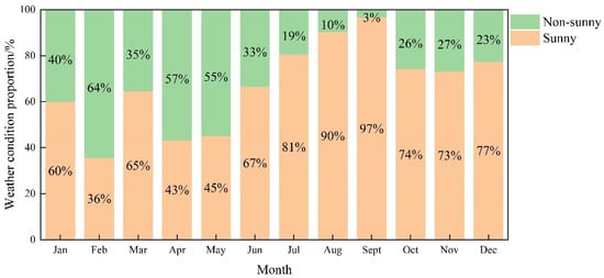 2. The number of sunny days at the site increases significantly after June, accounting for more than 60% of days this month and more than 90% of days in August and September;