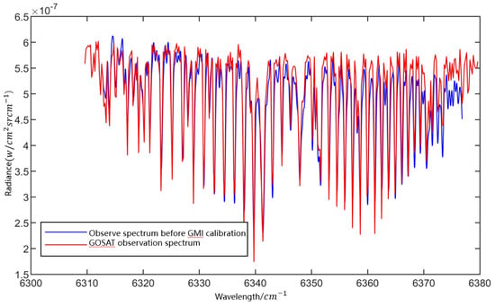 The observed spectrum and the GOSAT spectrum after the GMI calibration.