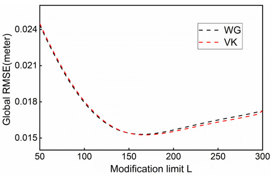The global RMSE obtained by different modification limits (L) of deterministic modifications.
