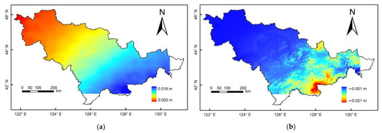 . The topography of Jilin Province gradually rises from west to east, with a maximum elevation of about 2667 m and an average elevation of about 405 m, showing a significant difference in height between the east and west. The study area was divided into plain and mountainous regions based on the topographic discrepancies. The average elevation of the plain and mountainous areas is about 170 m and 600 m, respectively.