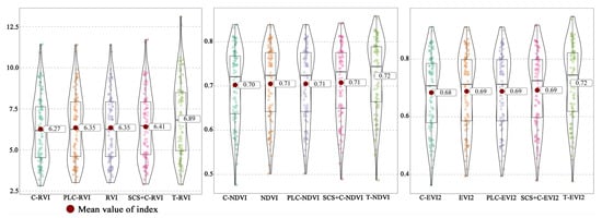 We also selected two indicators commonly used in previous studies to compare with VHI. Some studies [] found that the optimal retrieval indicator of AGB can be obtained by multiplying the mean value of VI and height. The calculation formula is as follows: