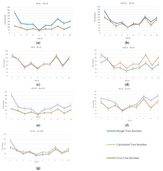 For this paper, the quality of the crown segmentation results mainly depends on the point cloud density and the growth mode of forest vegetation, whether it is loose distribution or interlaced branches and vines. The survey area in this paper belongs to the northeast forest region, and the vegetation distribution is relatively sparse. Therefore, the result of tree crown segmentation essentially depends on the point cloud density of forest land data and whether it is covered by trees. Some small trees or trees close to each other will inevitably be ignored, resulting in multiple trees combined into one tree. On the contrary, when a tree is too big or broad, it will be easily divided into two trees. The uniformity of tree growth in the forest area is also particularly important. Compared with the traditional watershed method, this method can avoid missing or excessive segmentation of the tree crown by moving the profile in multiple directions. In this paper, when d = 1.5 and HT = 1, the crown segmentation accuracy can reach 95.7%.