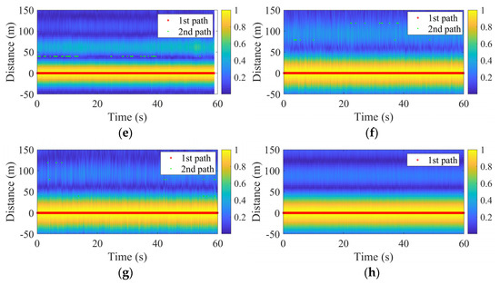 Figure 7c, the multipath component was regarded as the first path at those time epochs. In addition, there are also variations of the CIR around 54 s in