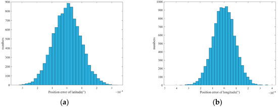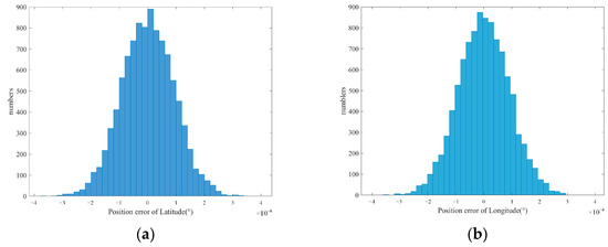 Probability distribution of longitude and latitude error. (a) Latitude error distribution; (b) longitude error distribution.