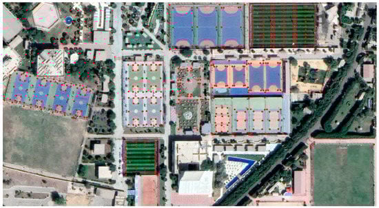 In order to evaluate the data set used in this research, a ground survey was conducted on an area with a large athletic area, which contains tennis courts and soccer and basketball fields representing the selected test area. The study area has two main useful characteristics. First, the area is flat and horizontal with almost no significant slope over the tennis courts or sports fields. This enables the examination of pure height accuracy because the flatness and the lack of slope of the surface rule out any planimetric uncertainty effects. Second, the presence of drainage ditches around the area facilitates the computation of planimetric accuracy.