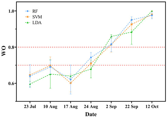 APA StyleWu, D., Yu, L., Yu, R., Zhou, Q., Li, J., Zhang, X., Ren, L., & Luo, Y. (2023). Detection of the Monitoring Window for Pine Wilt Disease Using Multi-Temporal UAV-Based Multispectral Imagery and Machine Learning Algorithms. Remote Sensing, 15(2), 444. https://doi.org/10.3390/rs15020444