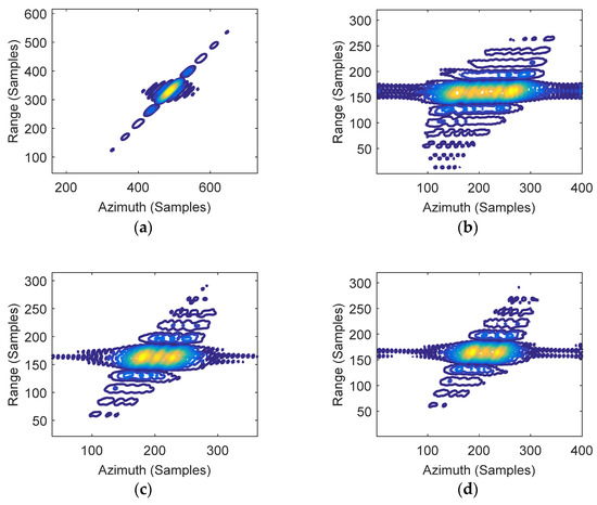 where and are the range frequency and azimuth time windows, and are the carrier and range frequencies, and represents the speed of light. Then, (3) can be expressed as: