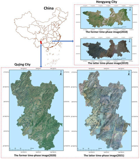 48]. The bi-temporal images of the two study areas are shown in