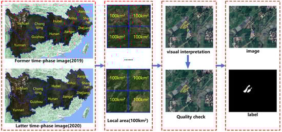 (1) A new deforestation training sample dataset was proposed, containing a total of 8330 true color samples (512 × 512 pixels) of 2 m spatial resolution. This dataset was generated by visual interpretation in 11 provinces of China’s Yangtze River Economic Zone, and it will be open-sourced to the community to help researchers worldwide to conduct deforestation detection studies.