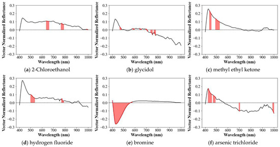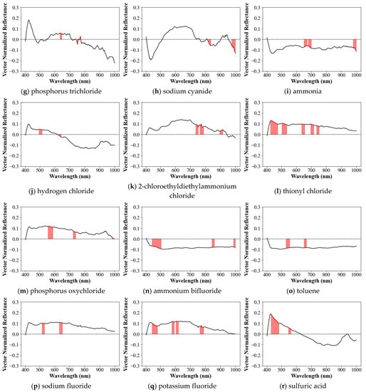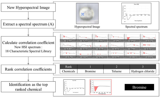 - We arbitrarily assigned a criterion for the maximum number of characteristic bands (or coverage) as five. Similarly, ranking criteria to define recognition success was set up as less than third rank. Though we verified that these criteria are suitable to build and utilize a spectral library, such ambiguity in properly defining the optimal criteria remained and should be resolved. For example, we speculate that spectral libraries can better work if developed with the greater number of spectral images, reflecting diverse measurement environments with applying advanced AI techniques to train the capacity to recognize chemicals’ signature. Also, the rank in the recognition process was provided in this study as correlation coefficient, rather than considered to suggest probability.