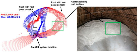 As a solution to the abovementioned limitations of imaging and LiDAR mapping technologies, a camera-assisted LiDAR mapping platform, denoted as Stockpile Monitoring and Reporting Technology (SMART), has been developed [11,12]. The cost-effective design of the SMART system allows for fast and simple data collection of salt stockpiles with varying sizes and shape complexities. Nevertheless, such hardware design leads to sparse LiDAR point clouds with varying point density and a low percentage of overlap between captured scans. These characteristics need to be considered in the data processing steps.