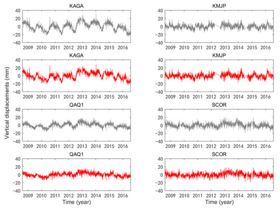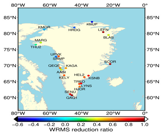 3.4. Influence of GRACE Seasonal Load Deformation on GPS Station Coordinates