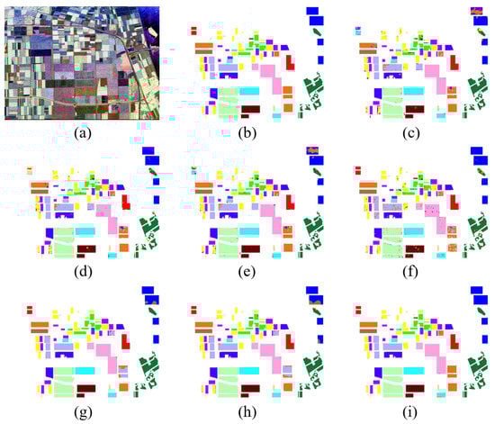 Result of the Flevoland-14 dataset: (a) pseudocolor image; (b) ground truth; (c) CNN; (d) 3D-CNN; (e) MS-CNN; (f) CV-CNN; (g) FCN; (h) U-Net; (i) proposed method.