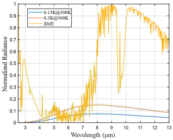 The spectral T-B contrast under different instrument performances was calculated to evaluate each performance parameter’s effect. Spectral bands with significant and prominent contrast in the target background were selected for further analysis. Finally, in conjunction with the analysis of instrument performance and radiance contributions, the causes of contrast in the characteristic spectral bands were discussed, and the advantages and disadvantages of each of these bands were compared.
