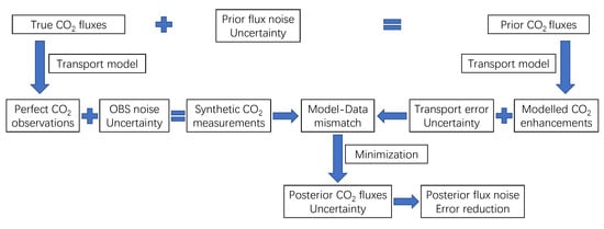 Flow chart of the Observing System Simulation Experiment (OSSE) for urban CO inversion.